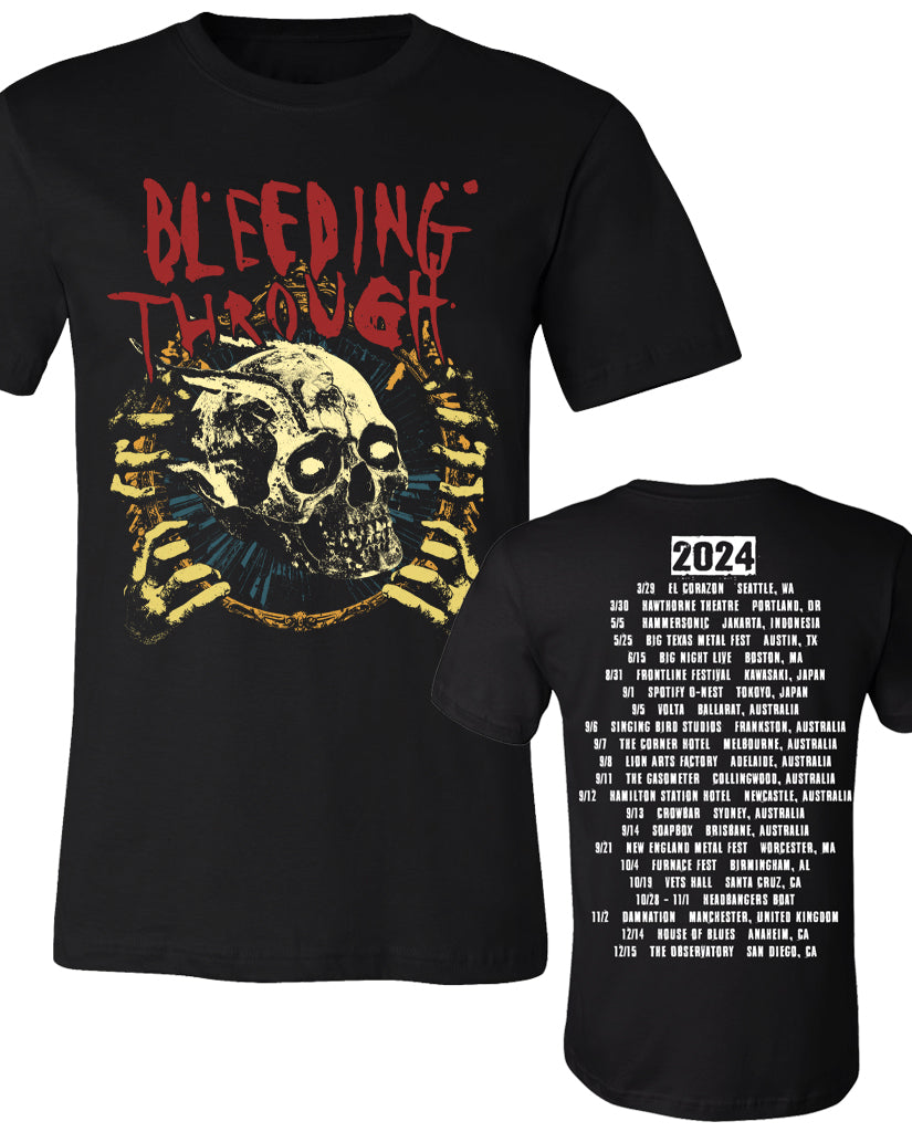 Unisex Premium Jersey Tee; "BLEEDING THROUGH" Front Print "TOUR DATES 2024" Back Print