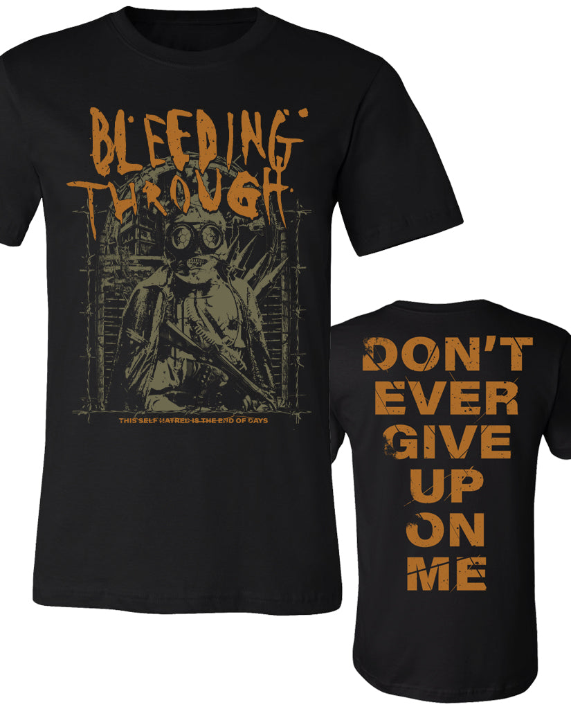 Unisex Premium Jersey Tee; "BLEEDING THROUGH" Front Print; "DON'T EVER GIVE UP ON ME" Back Print