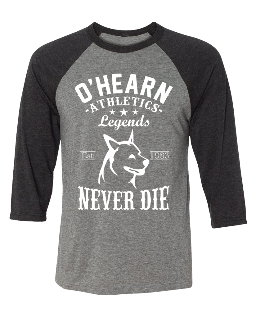 Contrast color set-in collar and three-quarter length raglan sleeves; Semi-fitted, side-seamed; Single-needle topstitched back neck; Double-needle stitched sleeves and bottom hem