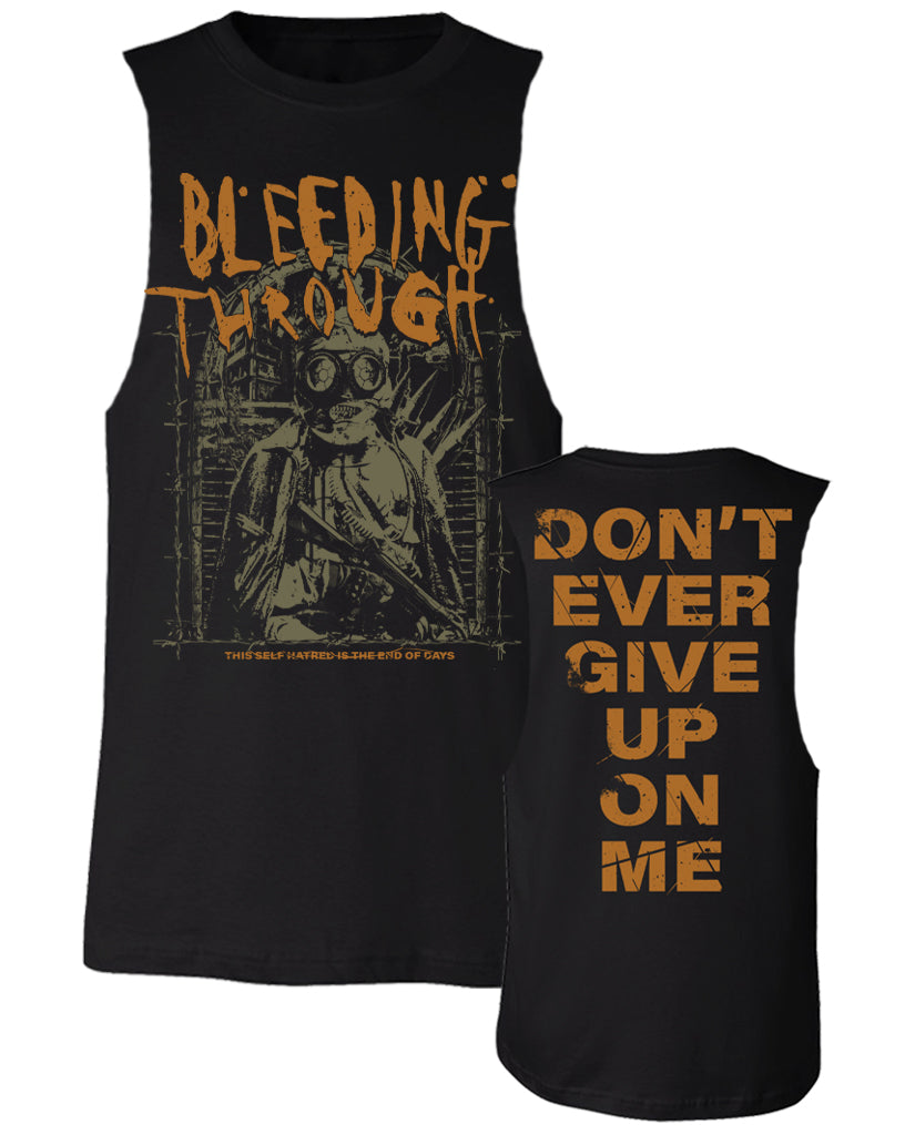 Unisex Custom Cut Muscle Tee; "BLEEDING THROUGH" Front Print; "DON'T EVER GIVE UP ON ME" Back Print