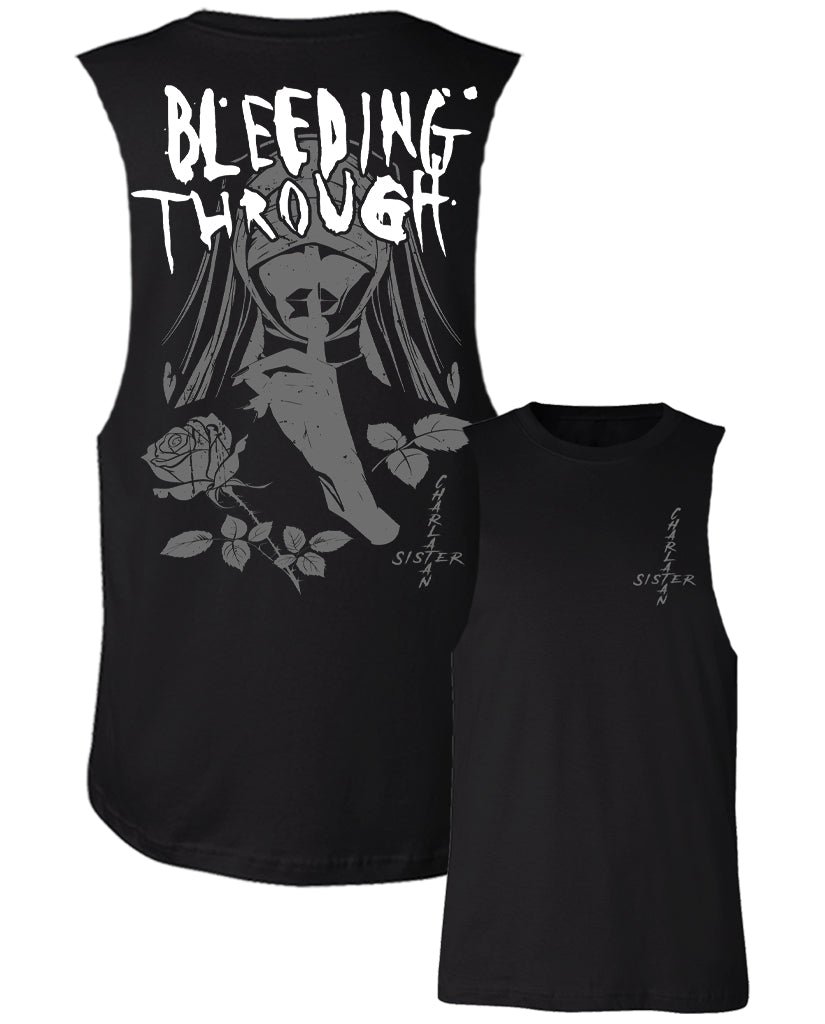 Unisex Custom Cut Muscle Tee; "SISTER CHARLATAN" Front Print; "BLEEDING THROUGH" Back Print